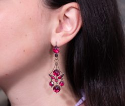 Een paar 18-karaats rosé gouden girandole oorbellen met ronde en peervormige roos geslepen granaat op roze goud folie, Zuid Frankrijk, gekeurd met Frans goudkeur voor 1838-1919.